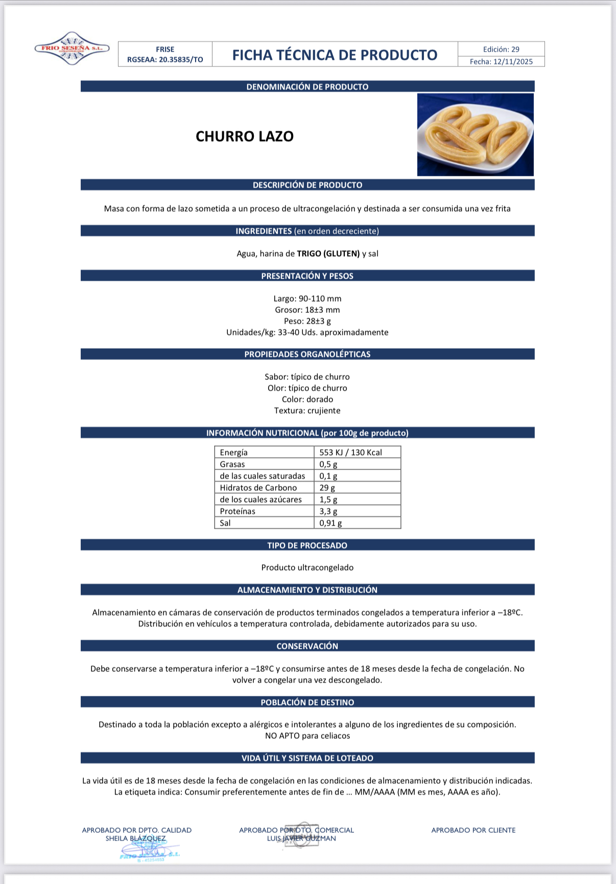 Freir sin descongelar en abundante aceite caliente, en freidora o en sartén a temperatura 180ºC – 200ºC, durante 3 ó 4 minutos.